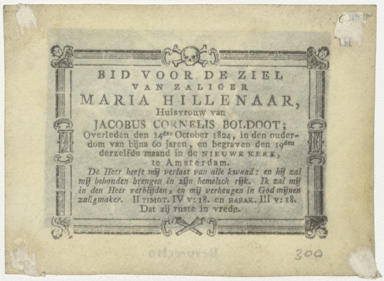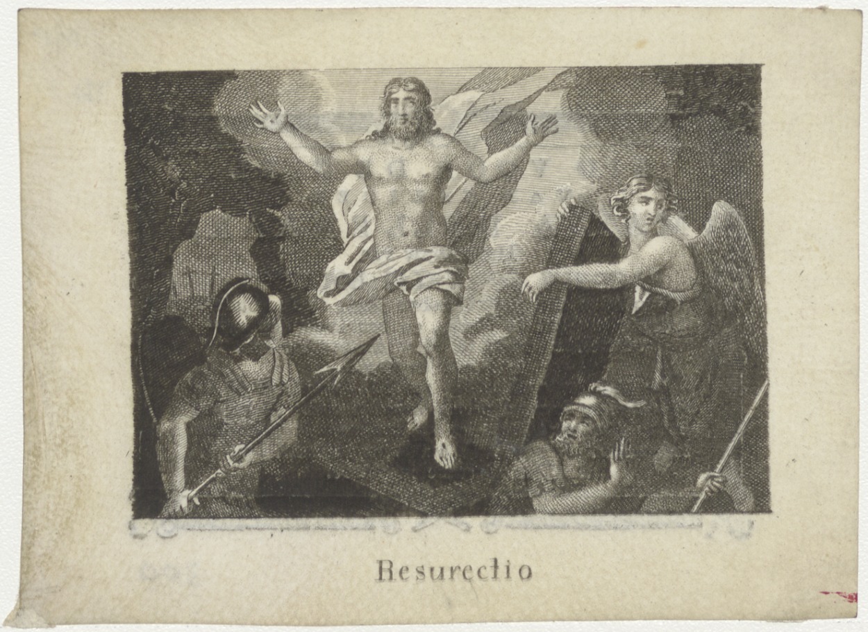 Verrijzenis van Christus, kz. Bid voor ziel Maria Hillenaar (+1824) Amsterdam, huisvrouw van Jacobus Cornelis Boldoot