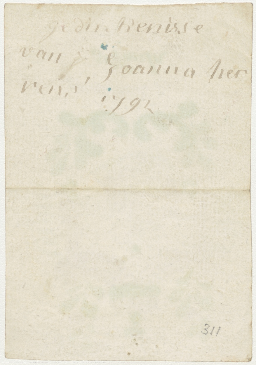 H. Ursula, ingekleurd, kz. "Gedinkenisse van Joanna her... 1792"
