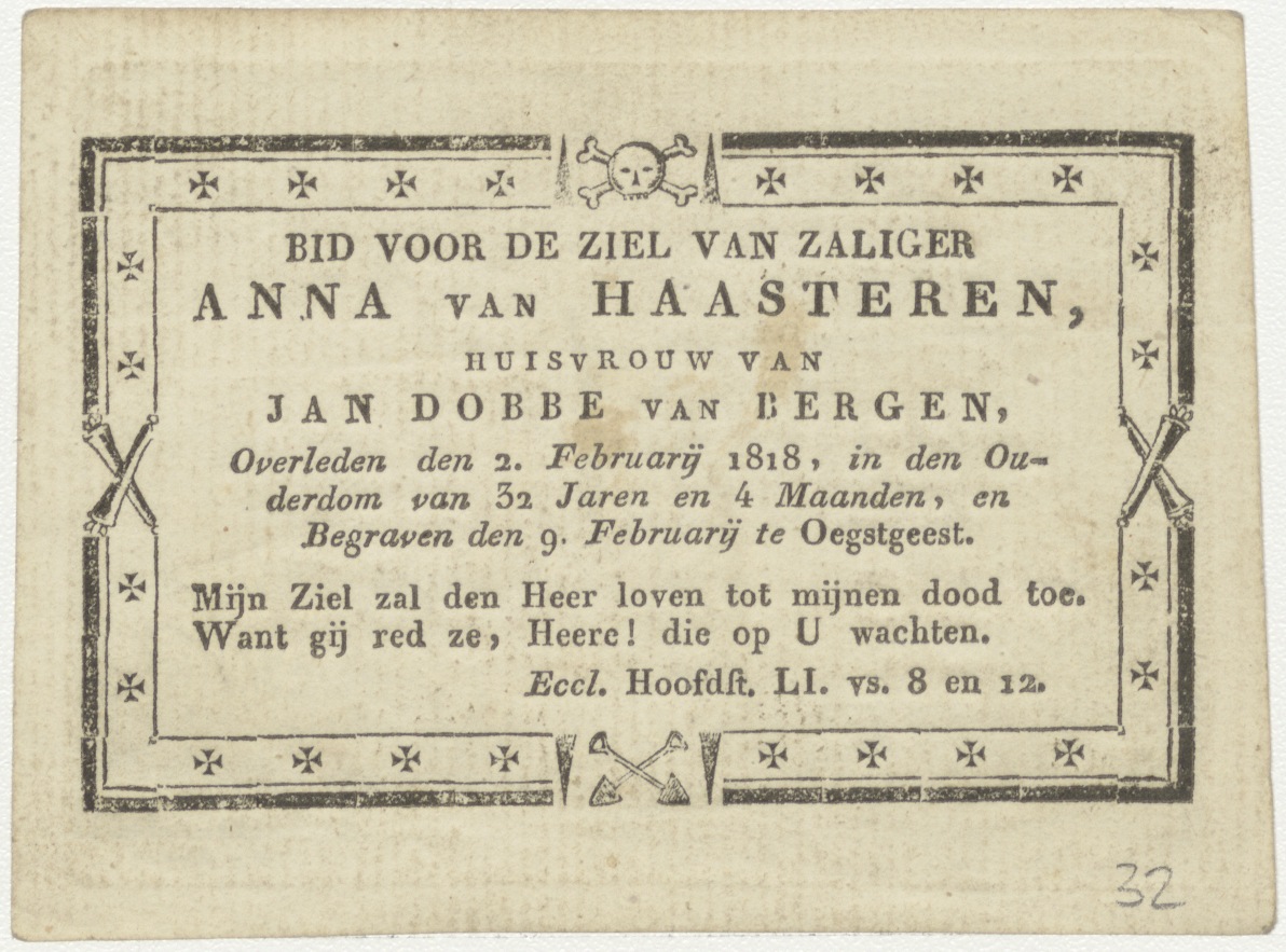 H. Agnes, kz. Bid voor ziel Van Haasteren-Dobbe van Bergen (+1818) Oegstgeest