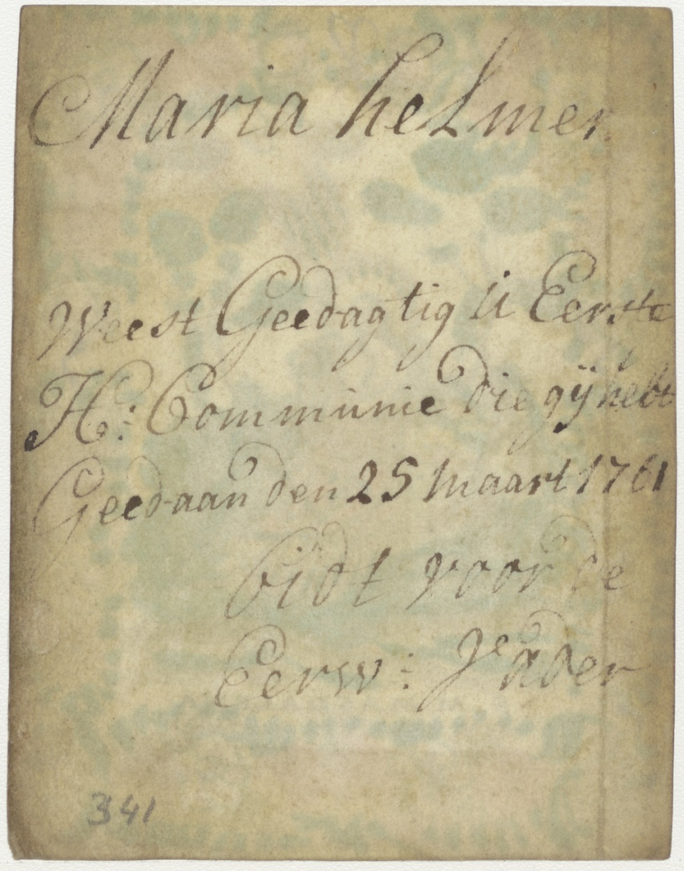 H. Maria Magdalena, ingekleurd, H. Communie Maria Helmer;1761