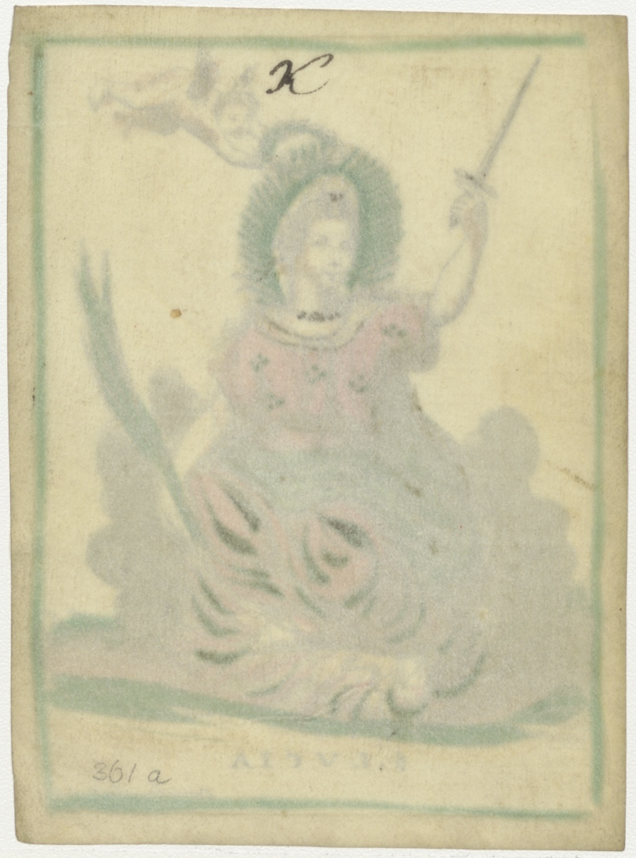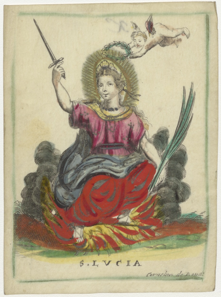 St. Lucia, ingekleurd, kz. "K", bidprent voor Maria Cecilia Schade van Westrum (+1810), met handgeschreven envelop StCC dp361 waarop bidtekst