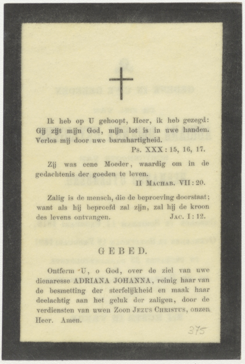 Gedenk in uwe gebeden ... Adriana Johanna Heyligers (+1891) Rotterdam, echtgenote van Hermanus Uylenberg
