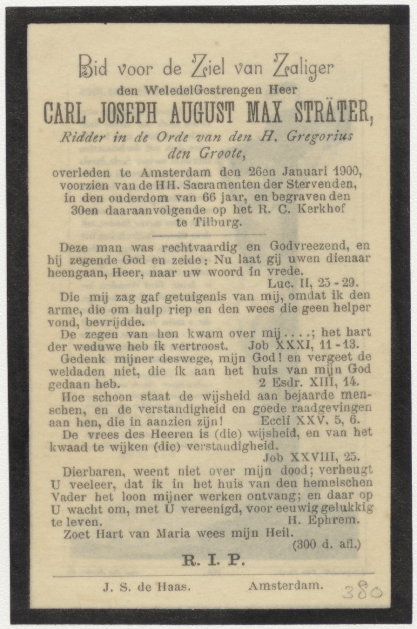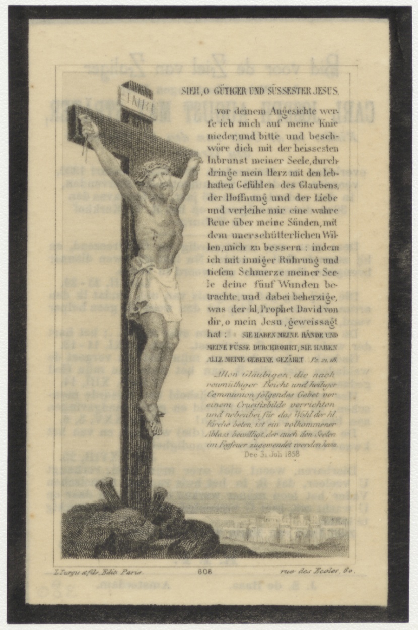 Gekruisigde Christus met tekst (Duits), kz. bid voor ziel Carl Joseph August Max Sträter (+1900) Amsterdam, Tilburg