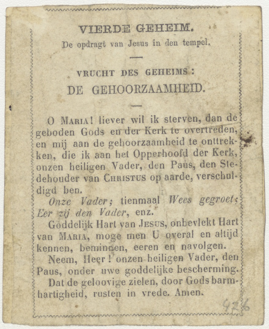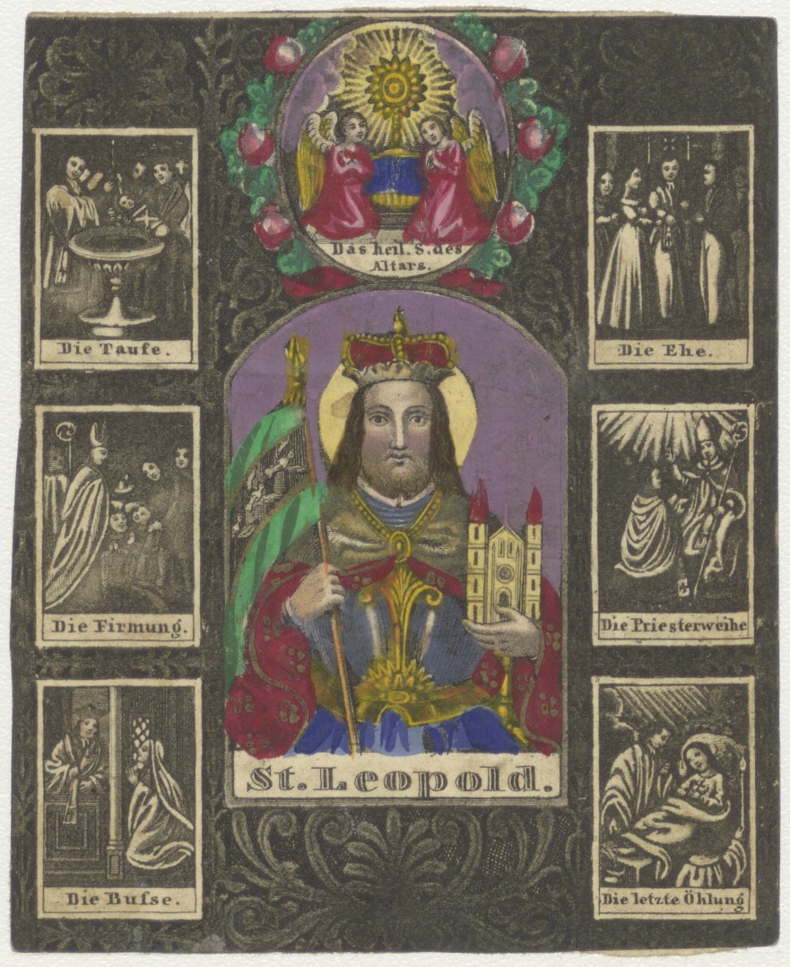 H. Leopold omringd door de zeven sacramenten, kz. Vierde geheim ... gehoorzaamheid, gebed