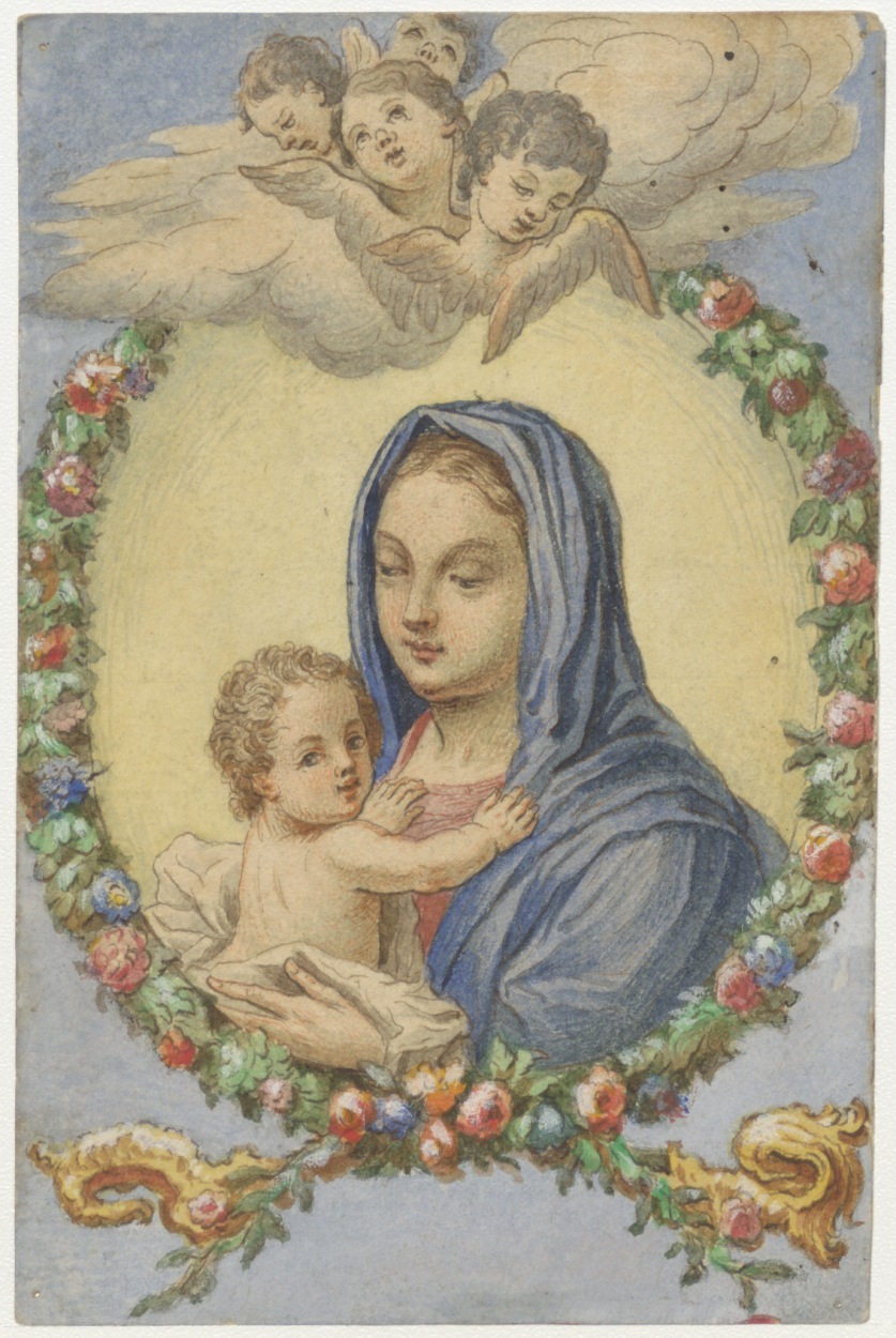 Maria met kind in bloemenkrans, kz. Postkarte ...