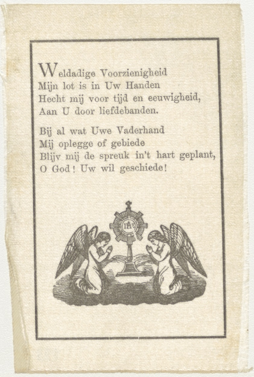 Monstrans met twee geknielde engelen, met "Weldadige Voorzienigheid ... Uw wil geschiede!"
