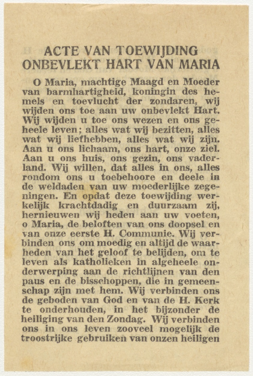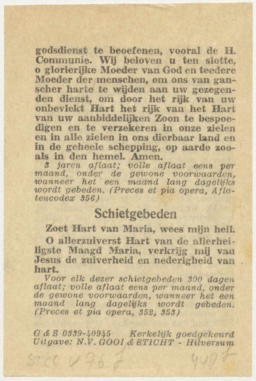 Acte van toewijding onbevlekt Hart van Maria, tekst, kz. schietgebeden