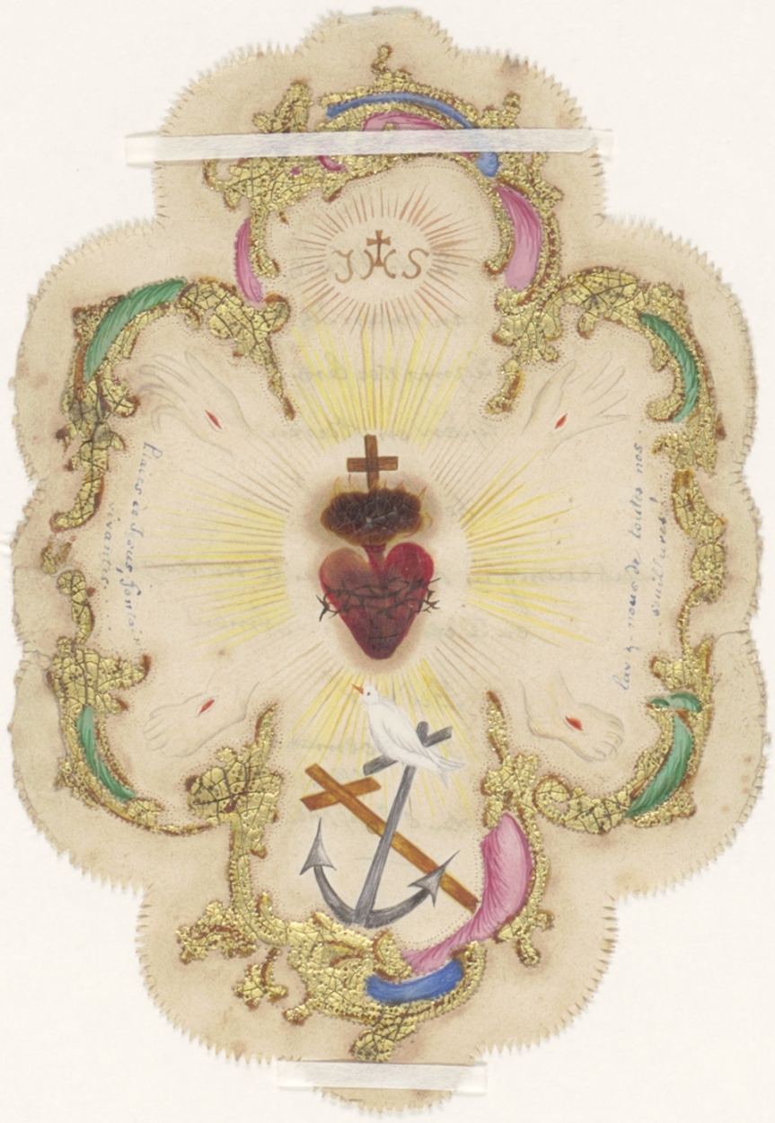 H. Hart met kruis en anker waarboven IHS, eromheen vier wondetekenen