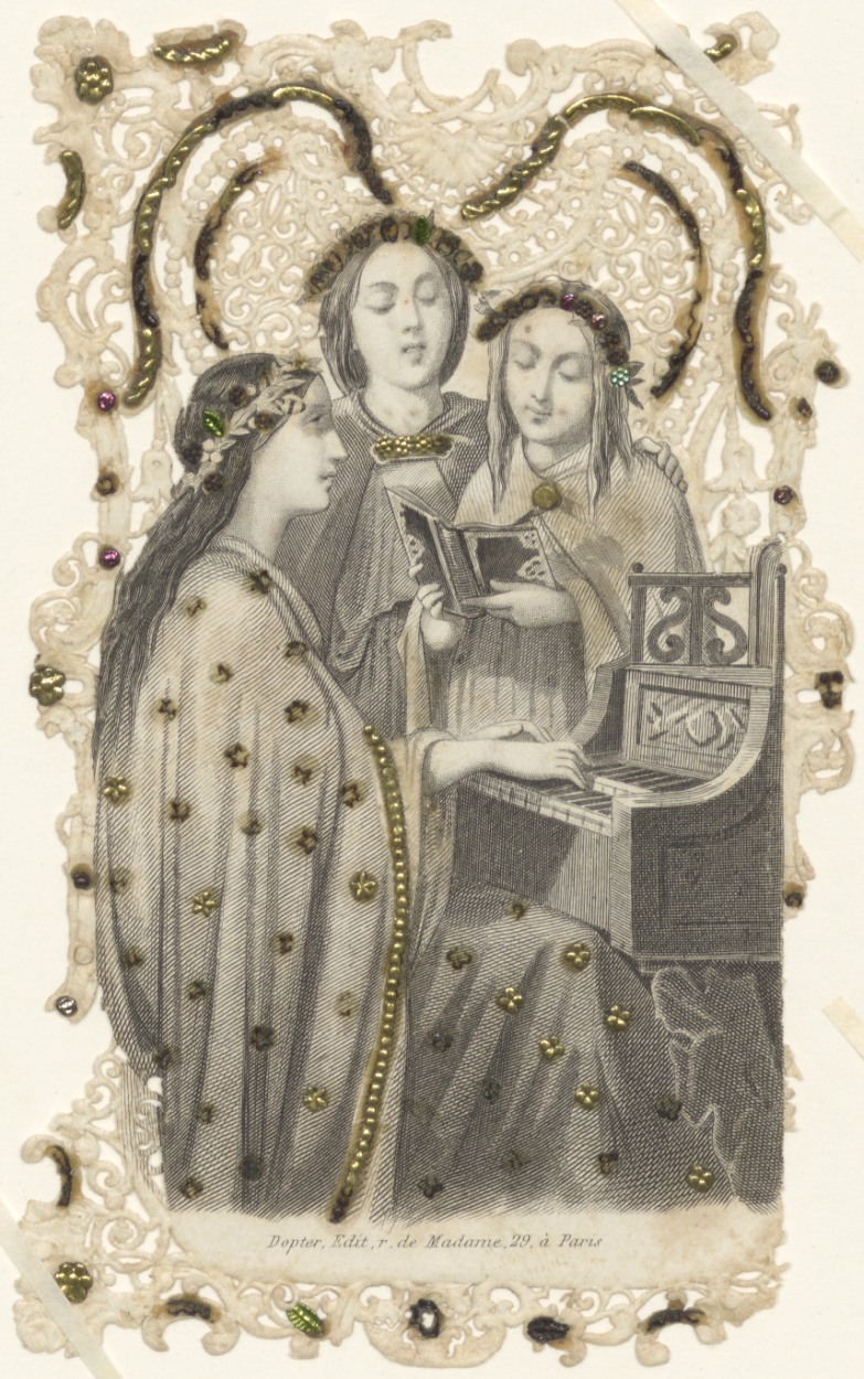 H. Cecilia(?) aan klavier met twee zangeressen