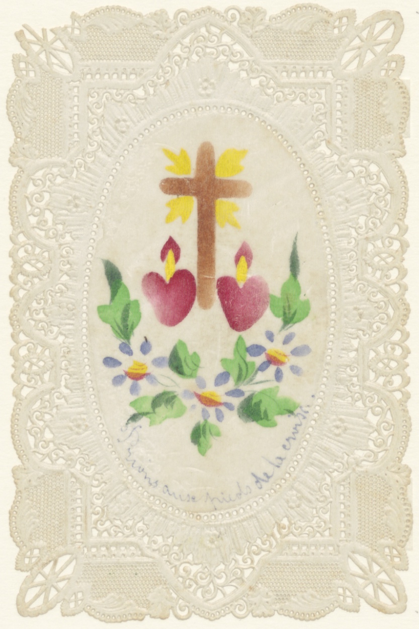 Kruis met twee H. Harten, gekleurd, kz. Marie Smits ...