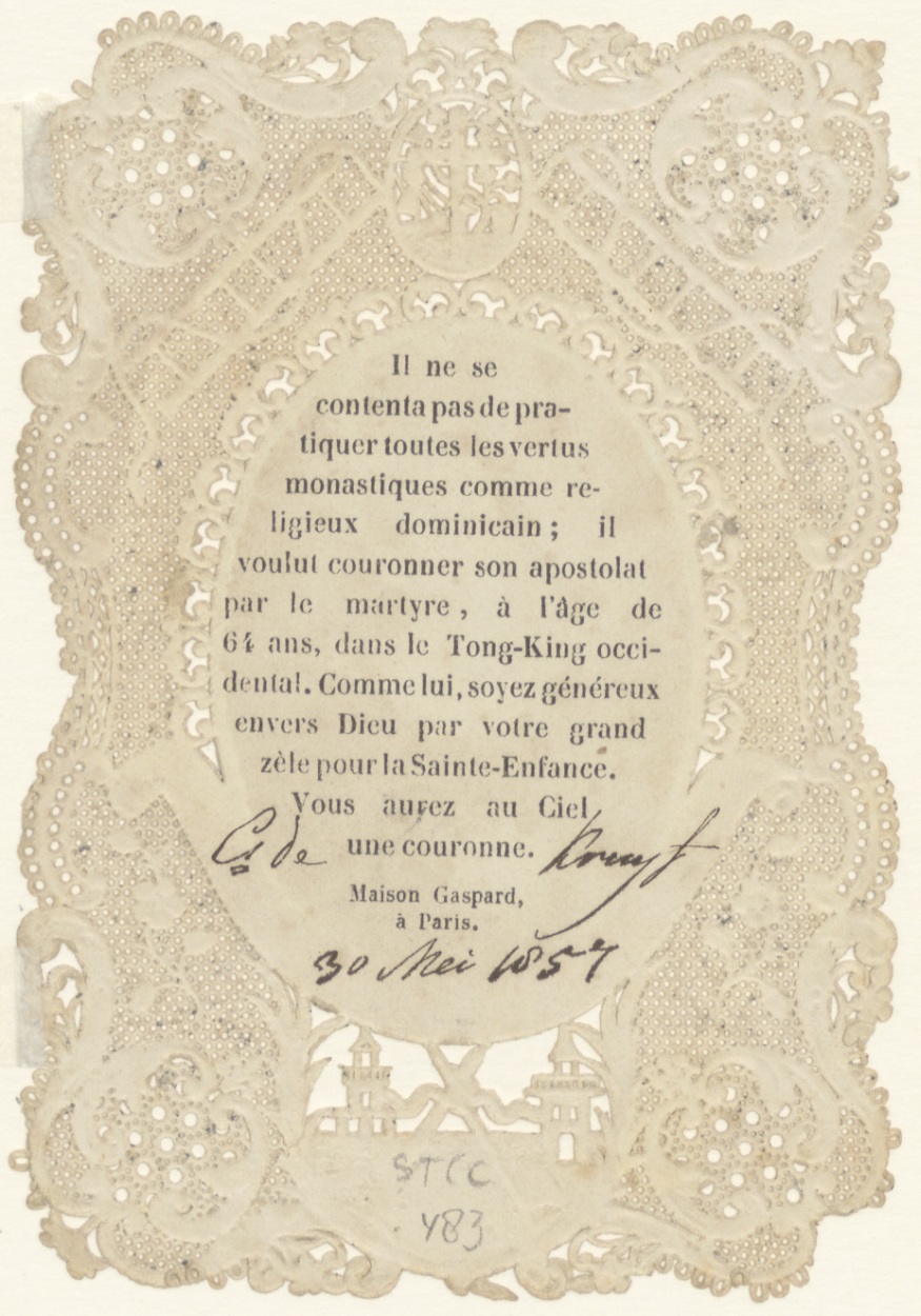 José Fernández, Dominicaanse monnik en martelaar, kz. levensbeschrijving, met "C. de Kruijf 30 mei 1857"