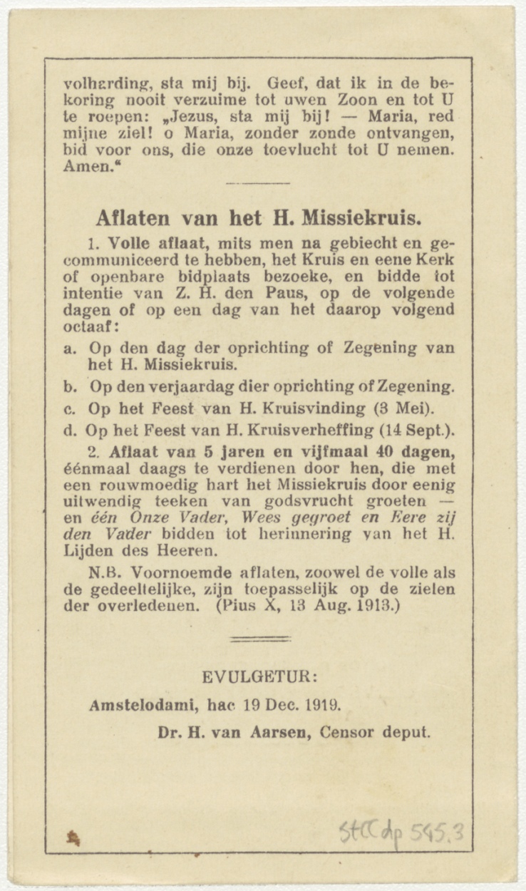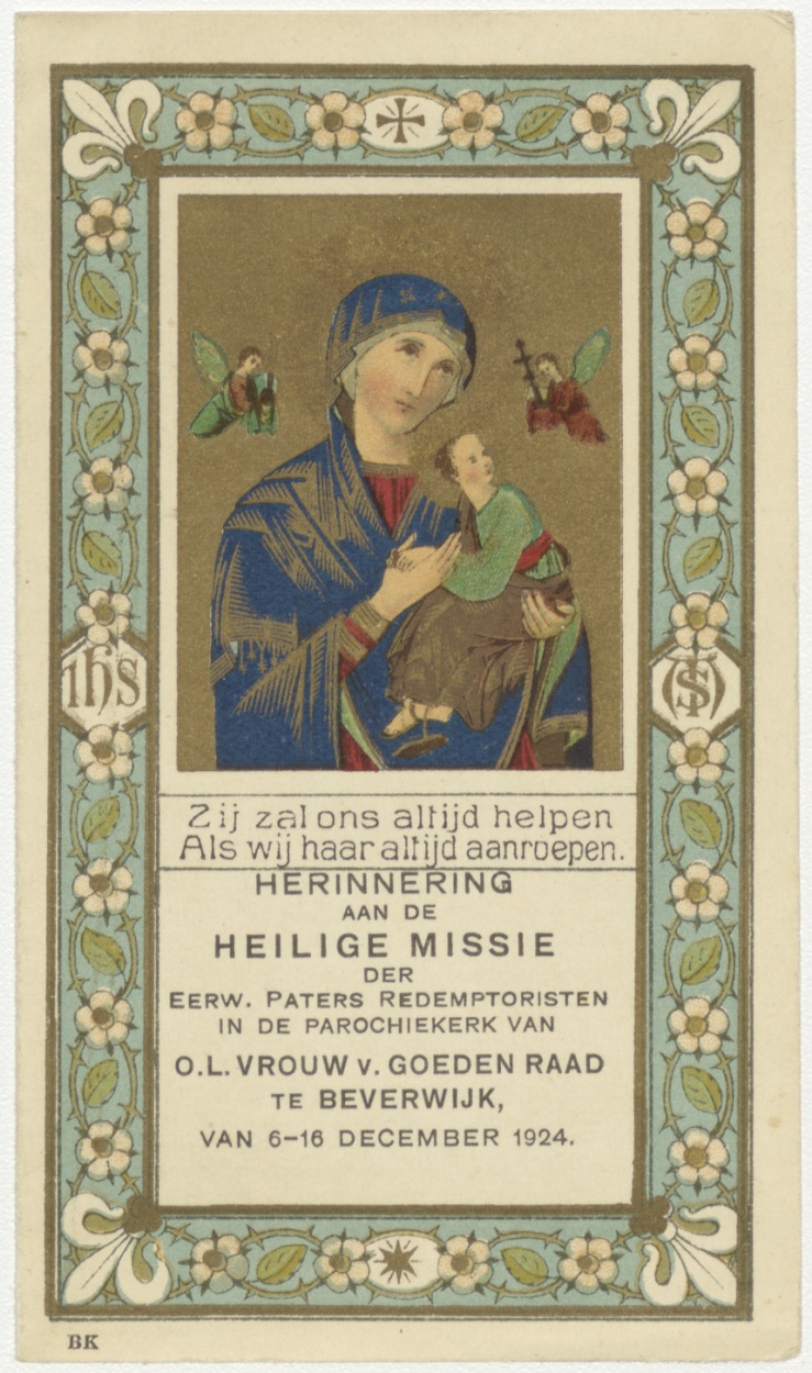 Volksmissieprent paters redemptoristen, Maria van Altijddurende Bijstand, O.L.V. ... Raad, Beverwijk
