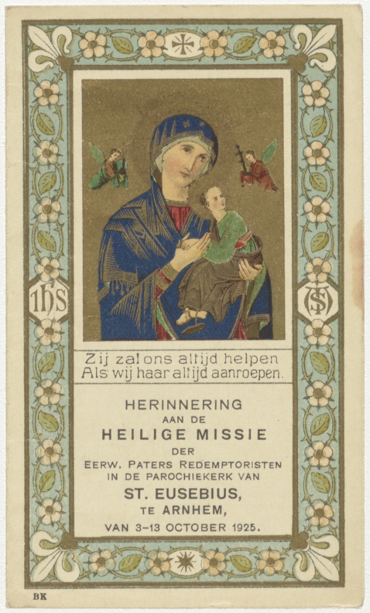 Volksmissieprent paters redemptoristen, Maria van Altijddurende Bijstand, St. Eusebius, Arnhem