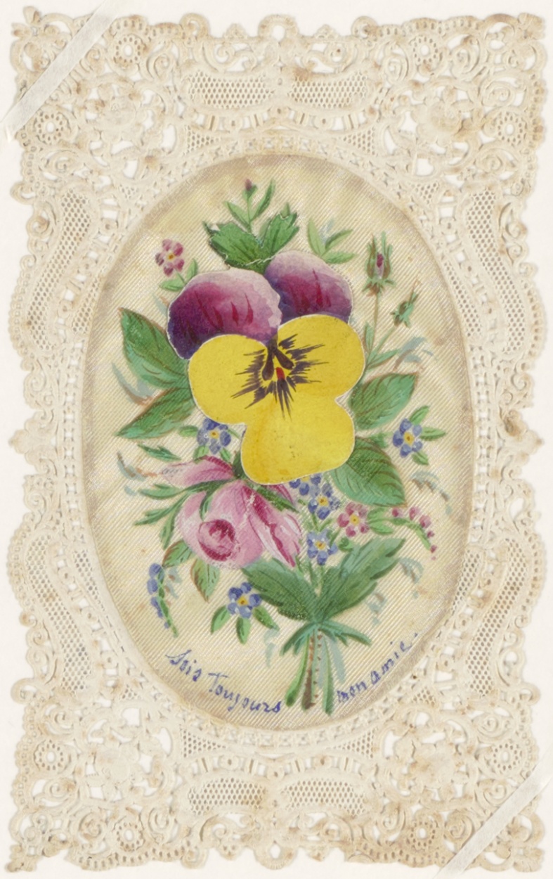 Viooltje en andere bloemen, voorstelling achter viooltje (Frans)