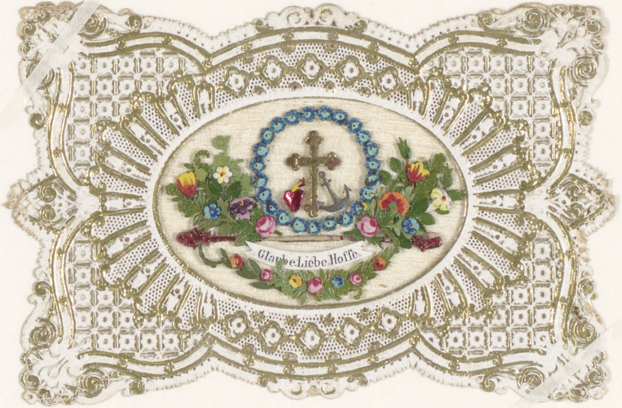 Geloof, Hoop en Liefde temidden van bloemen (Duits)