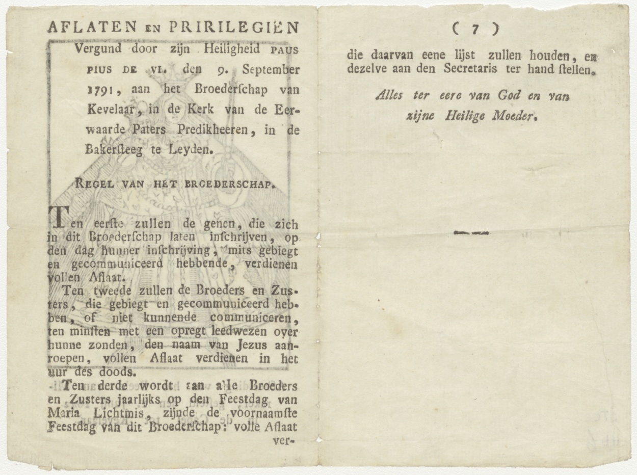 Leiden, Aflaten en privilegien van de Maria-broederschap van Kevelaer te Leiden