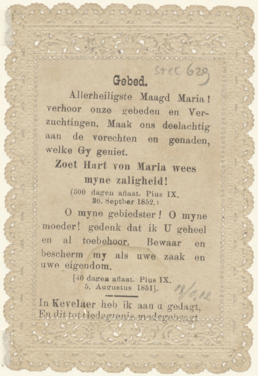 Maria van Kevelaer, kz. gebed, 40 dagen aflaat Pius IX 5 augustus 1851
