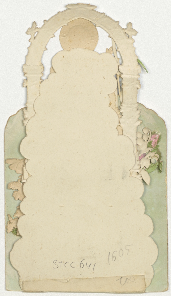 Communieprent met zegenend Christuskind op stro en wolken, met roze bloemen, met "Gloria in excelsis.."