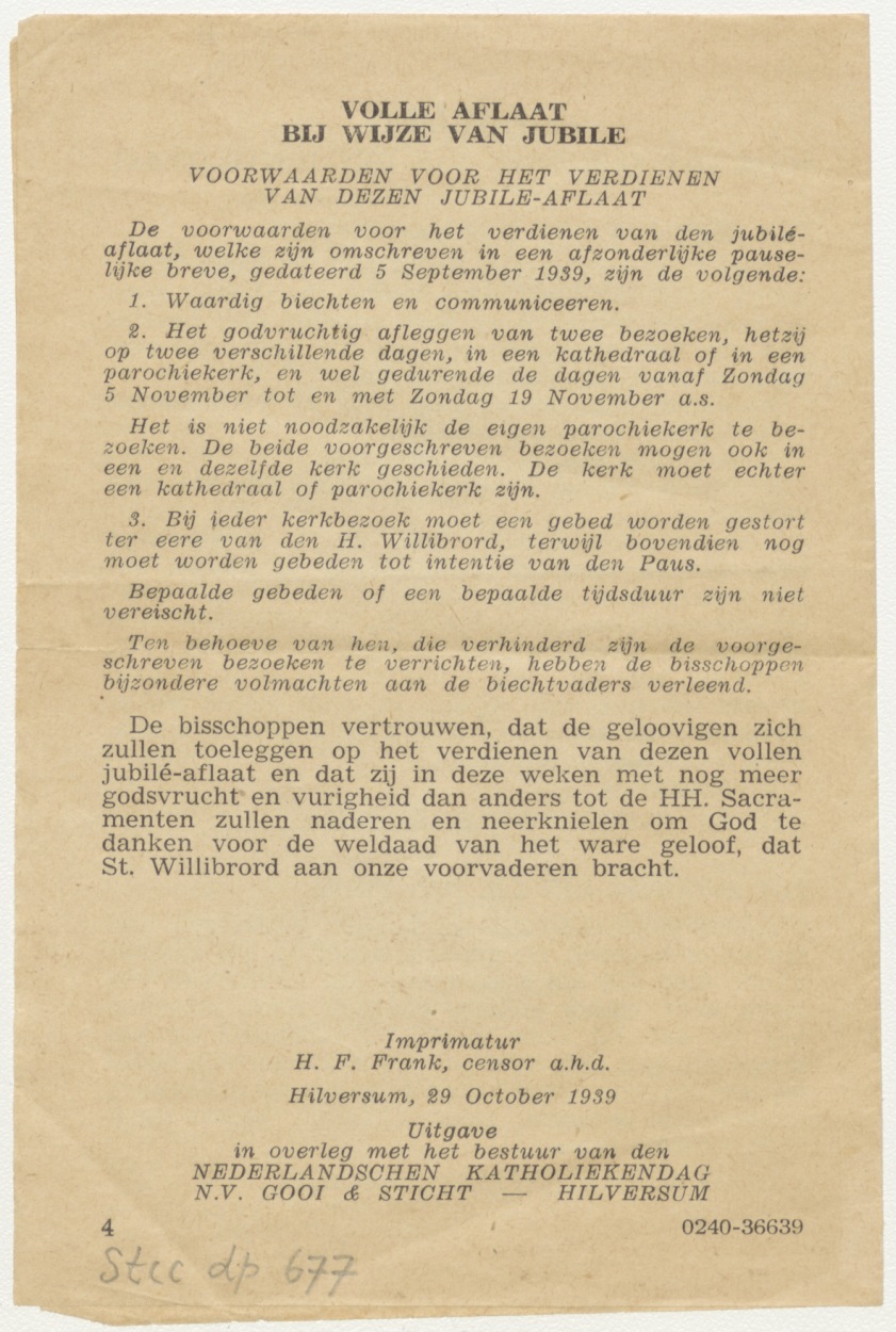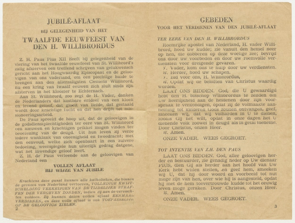 St. Willibrordusviering, gebeden en voorwaarden voor het verdienen van den jubilé-aflaat, kz. gebeden en voorwaarden