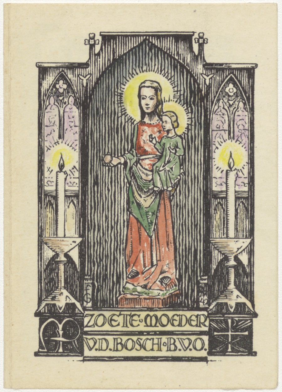 Onze Lieve Vrouw van Den Bosch, zonder mantel, ingekleurd, kz. Priesterwijding Ant. Corvers, 1942, Den Bosch