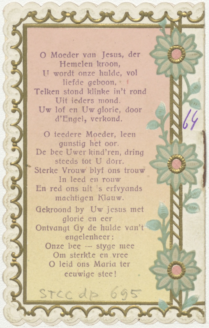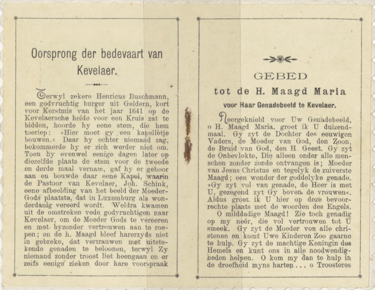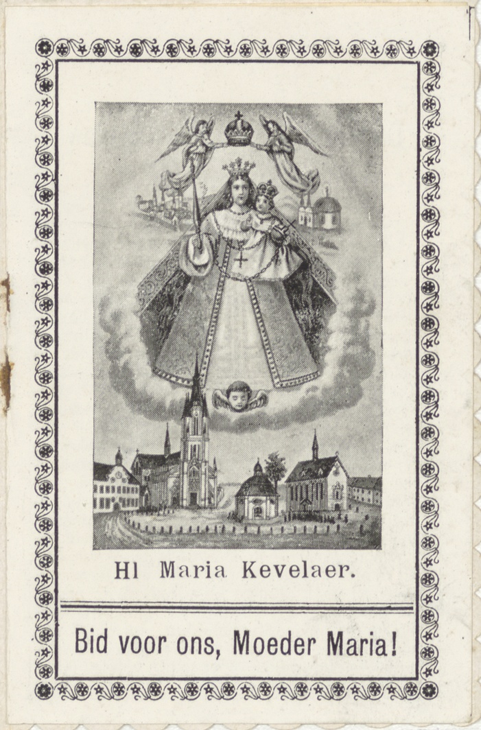 Gekleurde omslag met teksten over en voorstelling van Onze Lieve Vrouw van Kevelaer