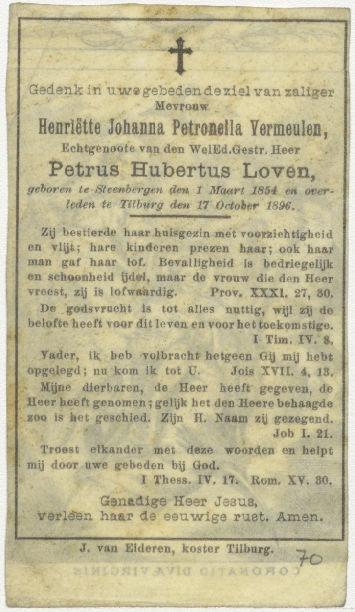 Kroning van Maria, kz. Bid voor ziel Loven-Vermeulen (+1896) Tilburg