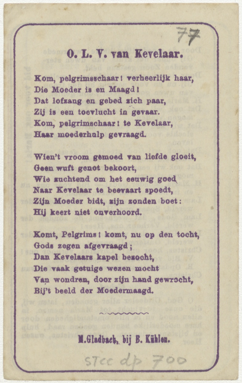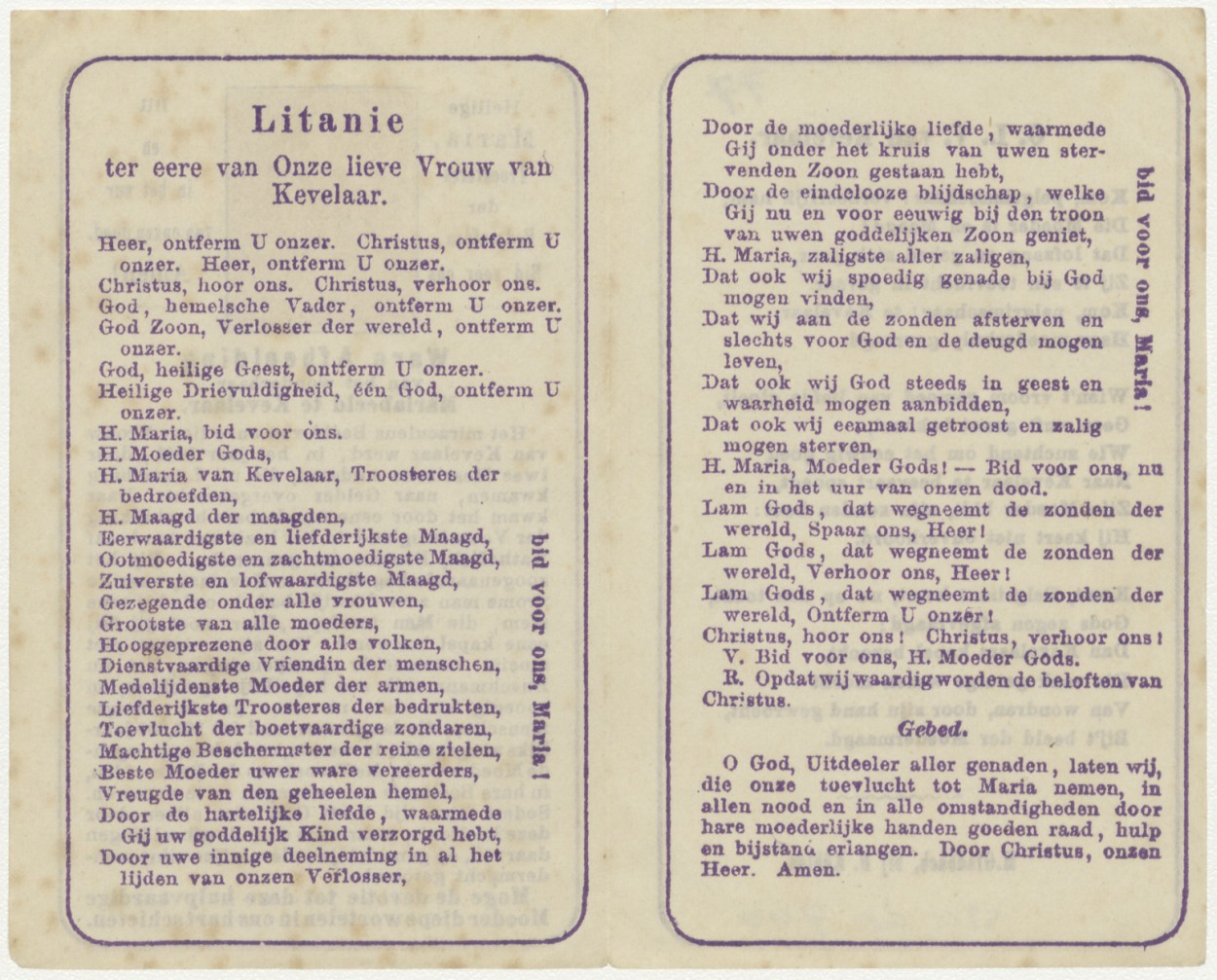 Onze Lieve Vrouw van Kevelaer, ware afbeelding, kz. Litanie en lied