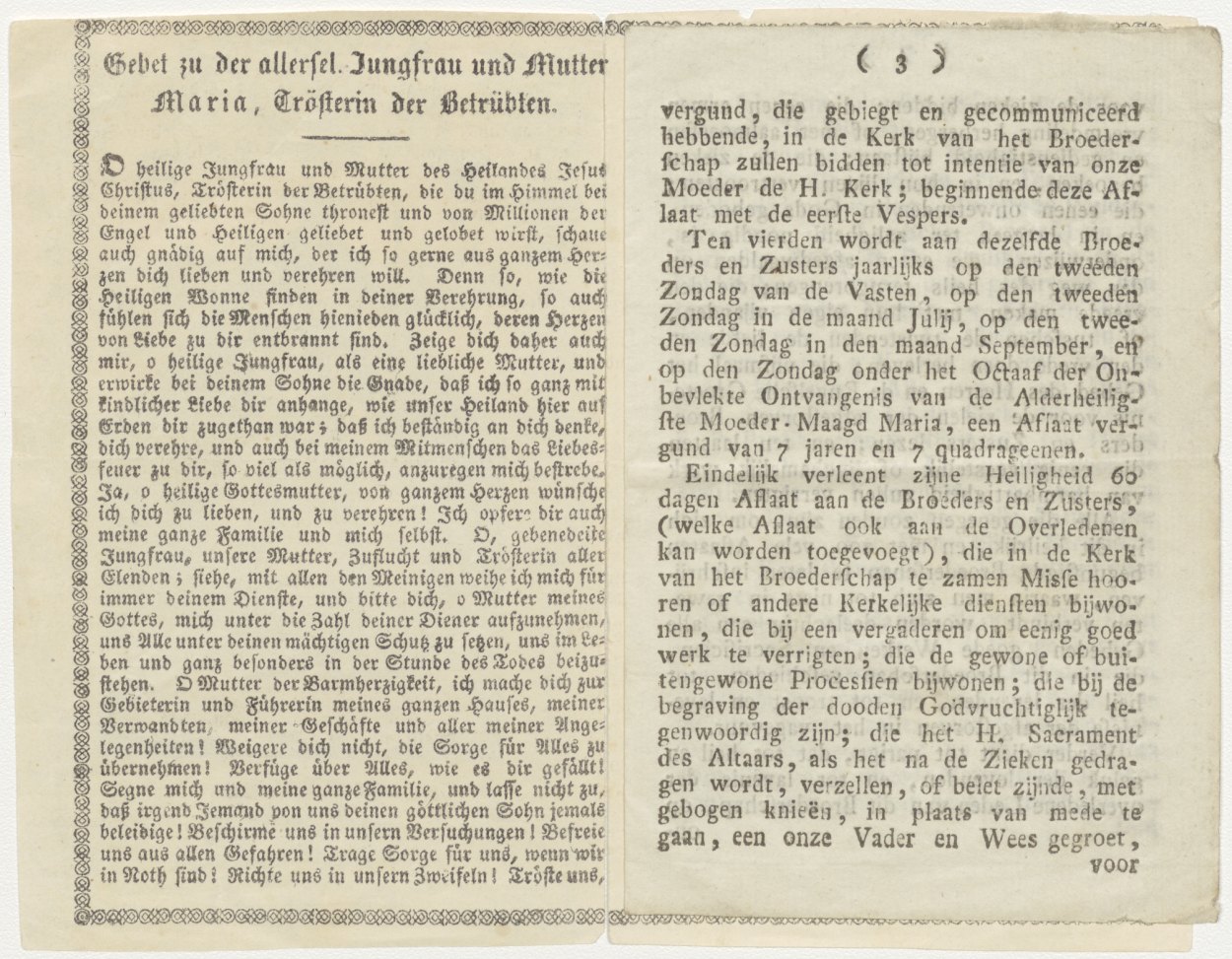 Onze Lieve Vrouw van Kevelaer, reproduktie oud prentje in randversiering, kz. Lobgesang zur heil. Maria, met Maria en Johannes Evangelist
