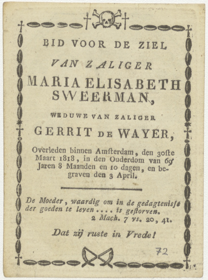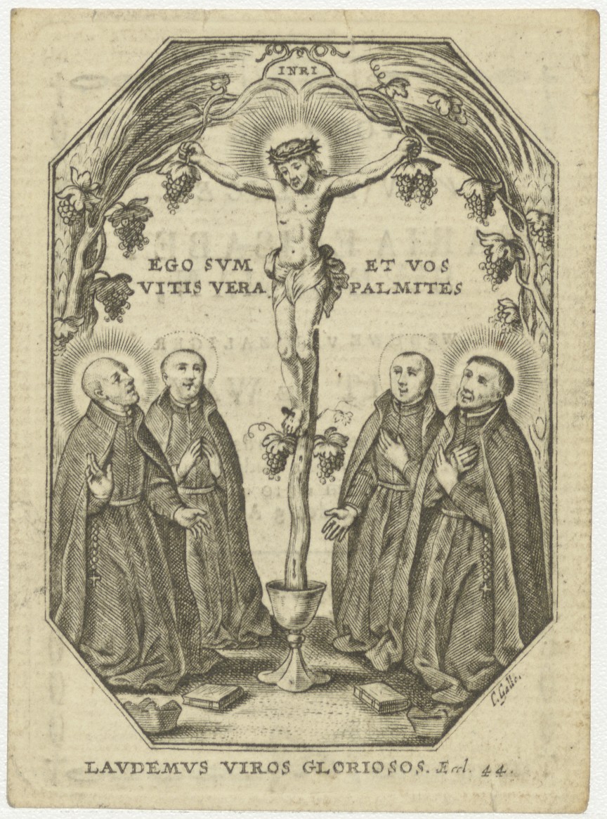 Christus als Ware Wijnstok en vier Jezuïetenheiligen (Eccl.44), kz. Bid voor ziel De Wayer-Sweerman (+1818) Amsterdam