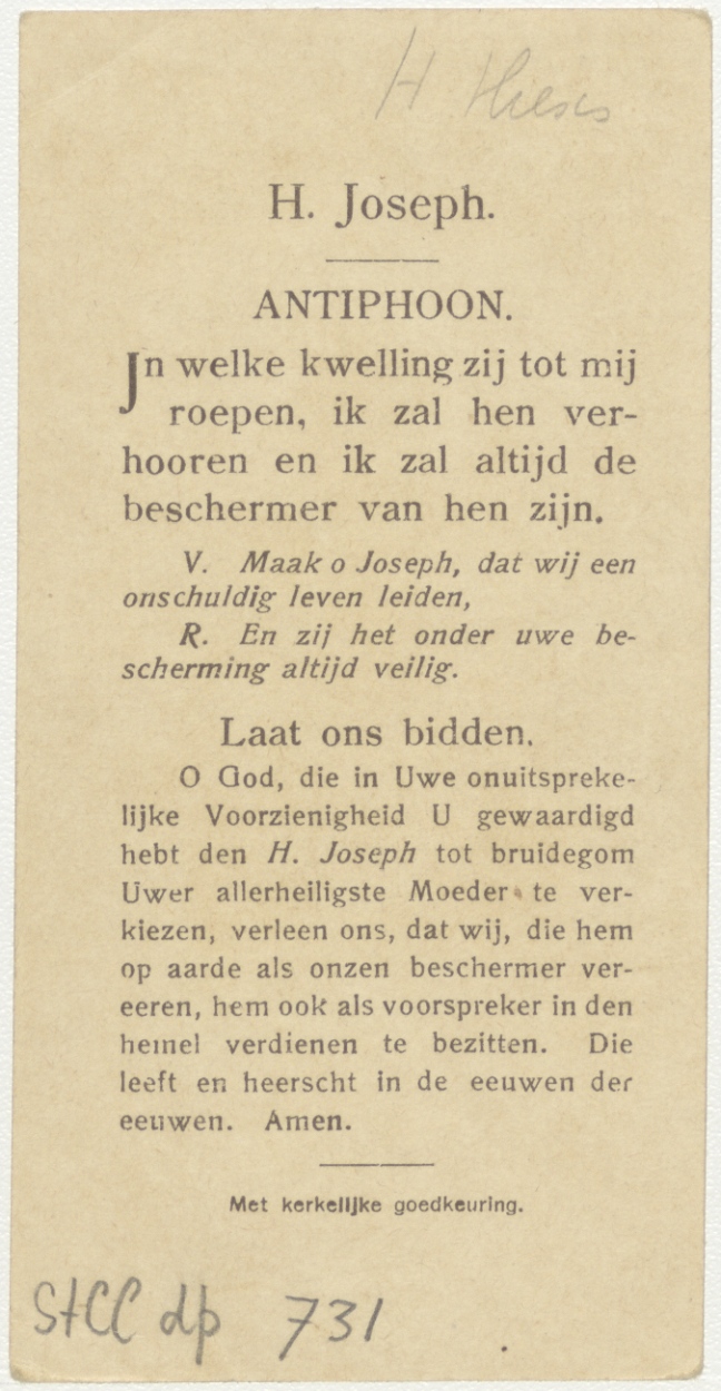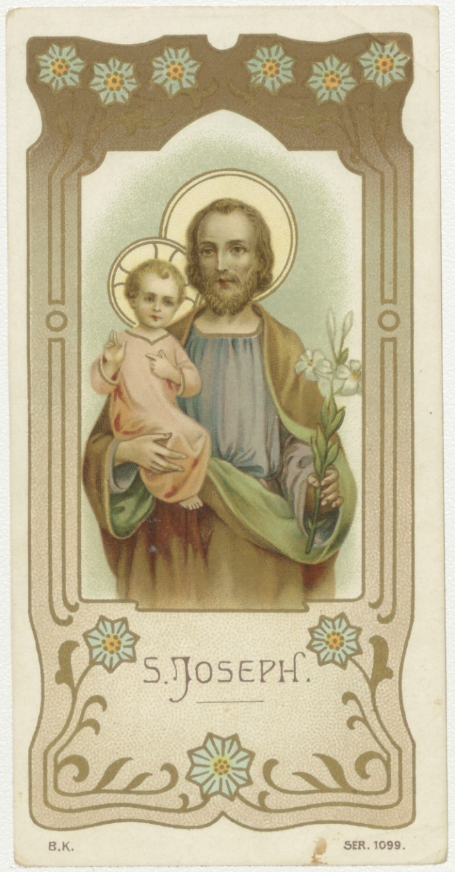 H. Jozef met kindje Jezus, in art-nouveau omlijsting, kz. Gebed