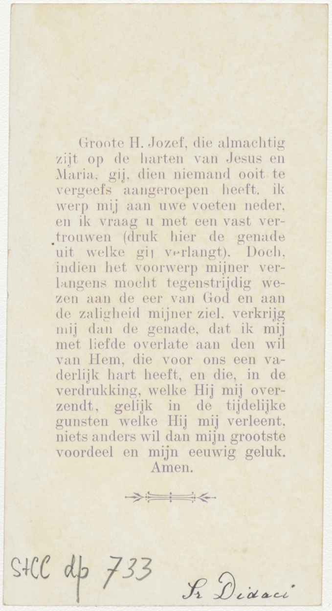 H. Jozef met kindje Jezus, kz. Gebed, met "Sr. Didaci"
