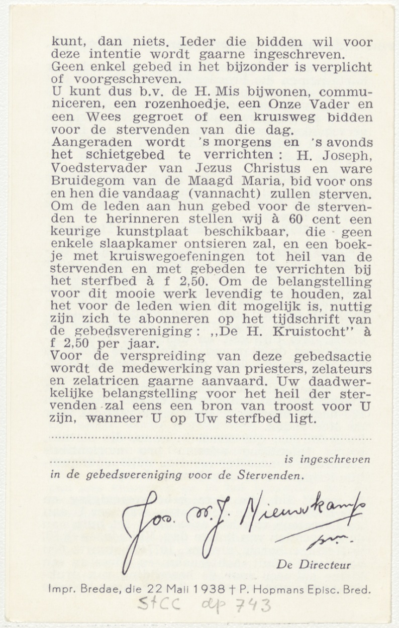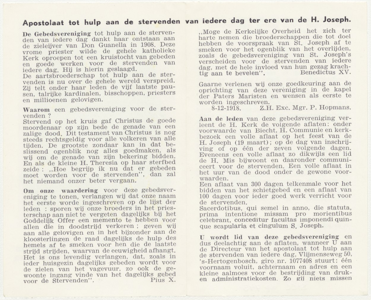 H. Familie met H. Jozef voedster vader van Jezus Christus, kz. Apostolaat tot hulp aan de stervenden van iedere dag ter ere van de H. Joseph