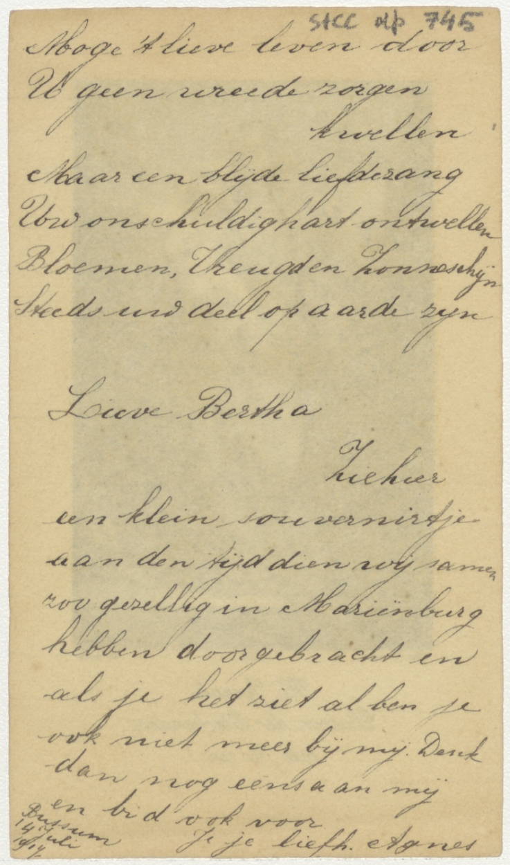 H. Jozef met kindje Jezus, kz. gedicht in handschrift, Bussum 1917