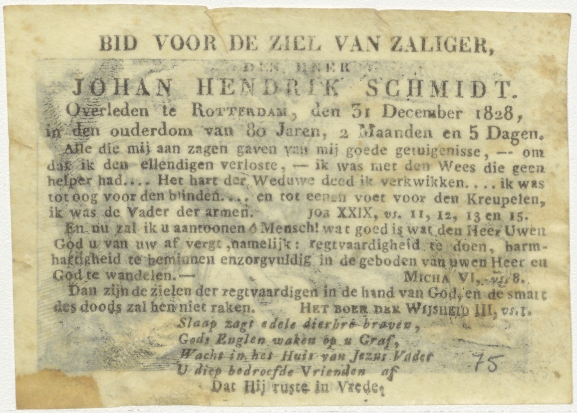 H. Marcus, kz. Bid voor ziel Schmidt (+1828) Rotterdam