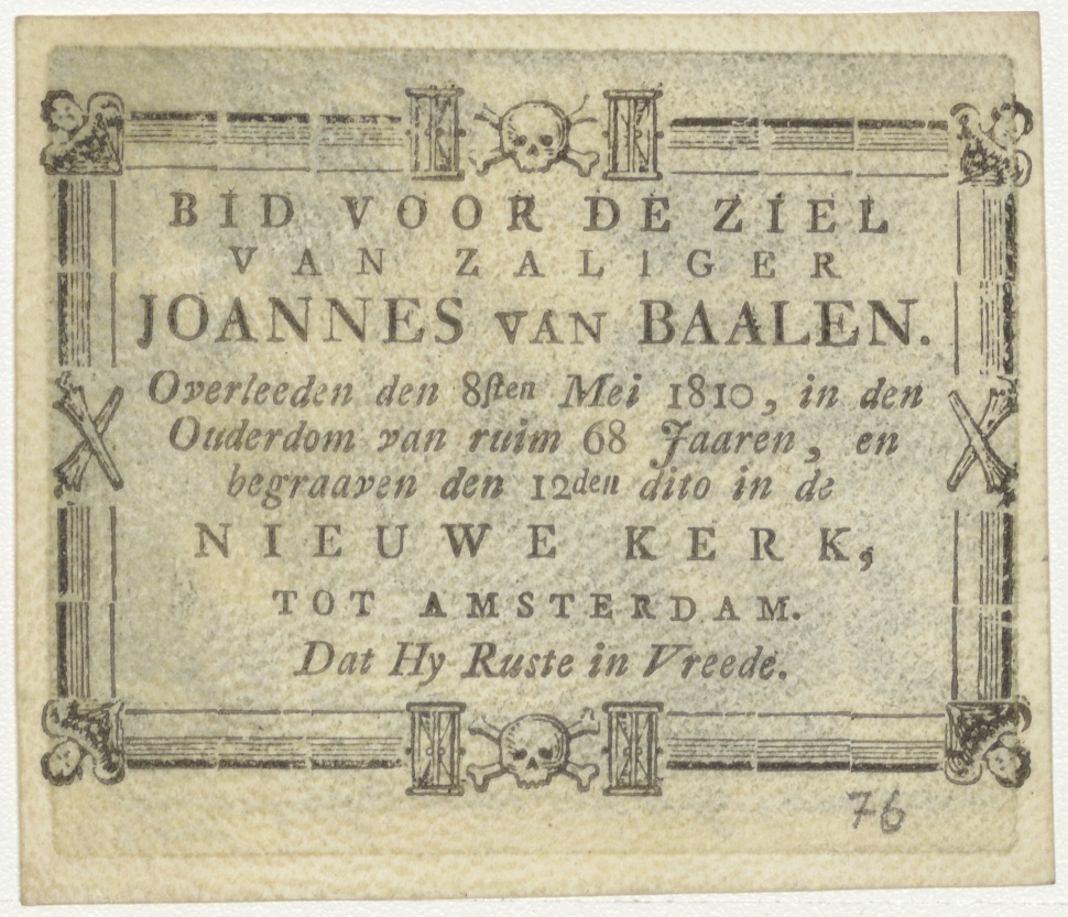 Hagar en de engel (Gen.16), kz. Bid voor ziel Van Baalen (+1810) Amsterdam (Nieuwe Kerk)