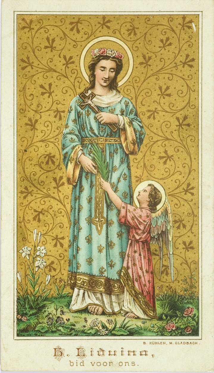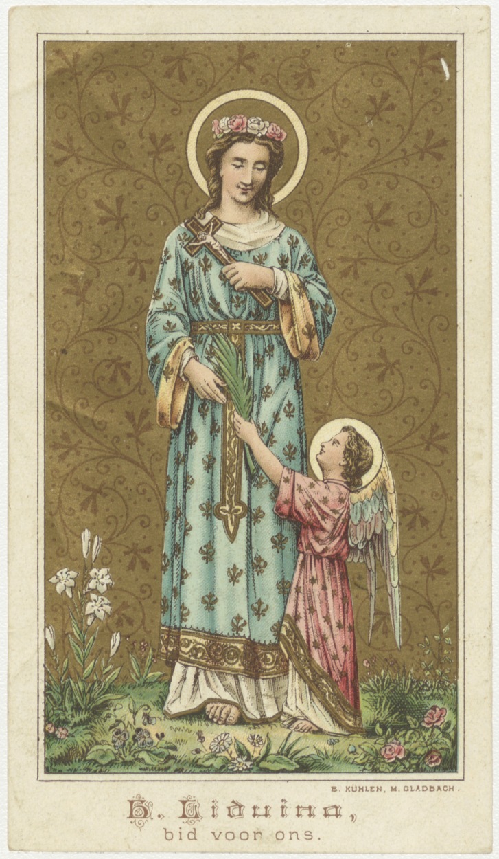 H. Liduina met "H. Liduina, bid voor ons.", kz. "Gebed. God, die de H. Maagd Liduina tot een offer hebt gemaakt ..."