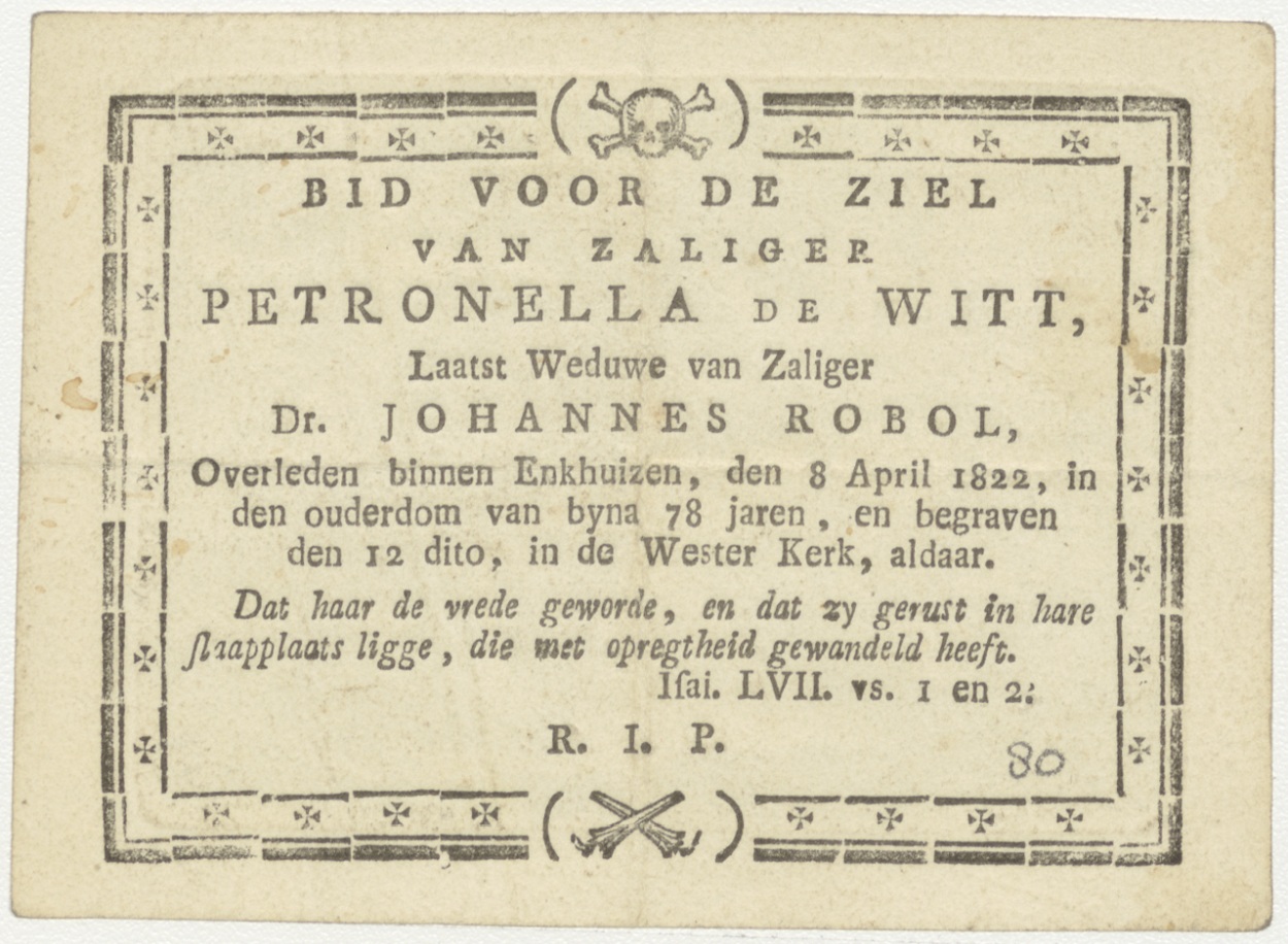 Emmausgangers, kz. Bid voor ziel Petronella de Witt (+1822) Enkhuizen, weduwe van Johannes Robol