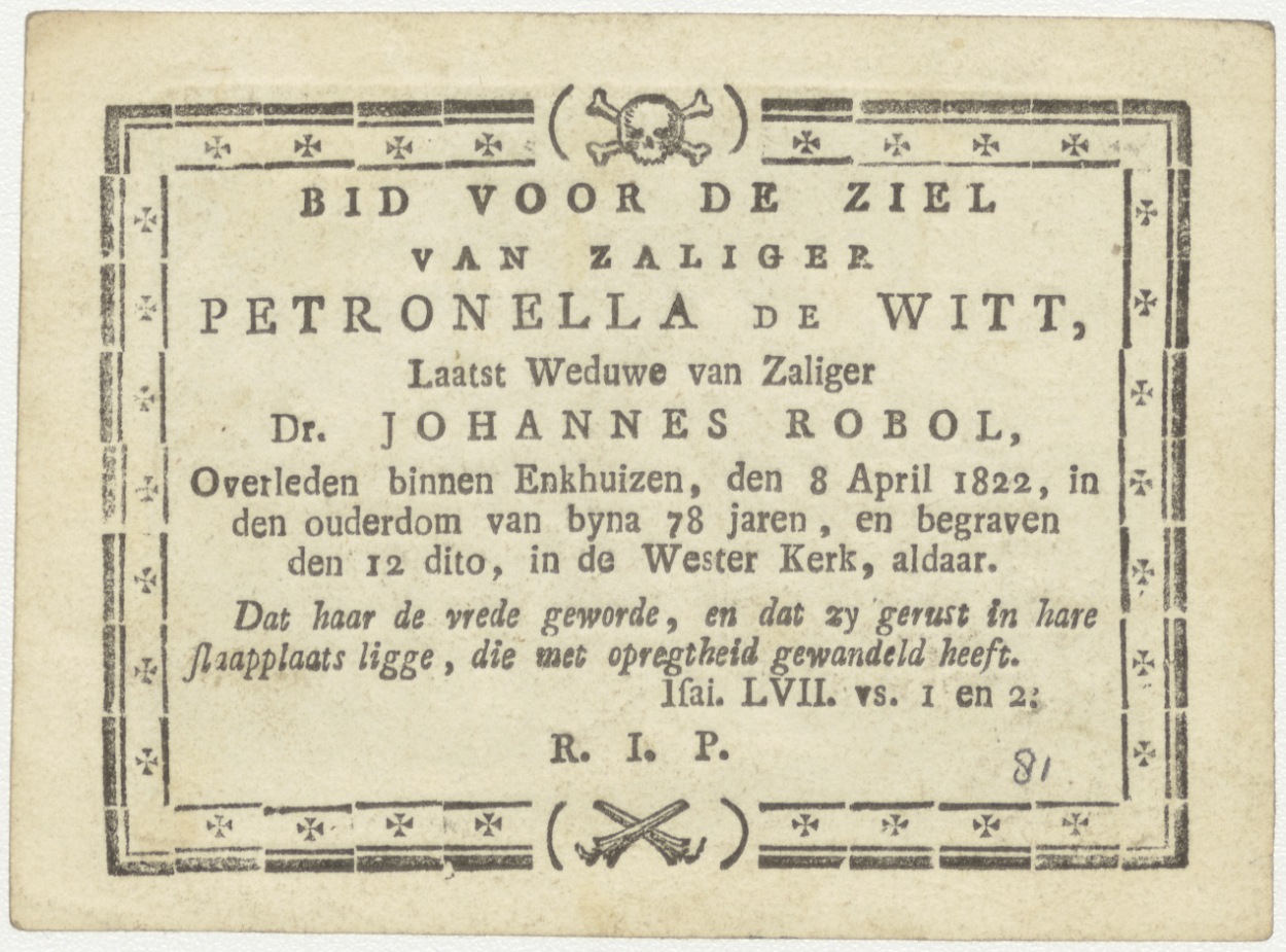 Emmausgangers, kz. Bid voor ziel Petronella de Witt (+1822) Enkhuizen, weduwe van Johannes Robol