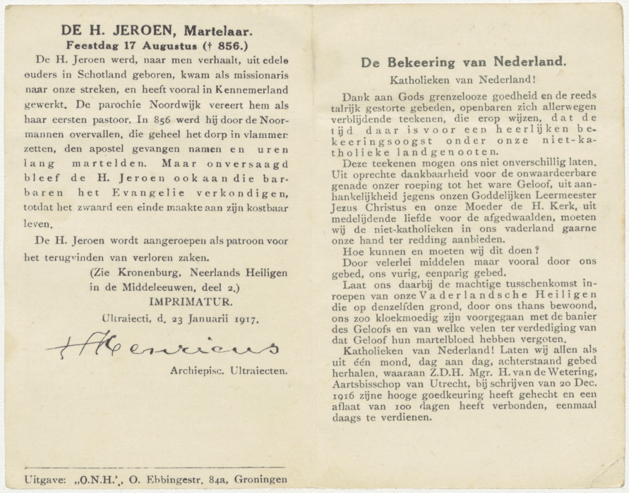 3e Serie Onze Vaderlandsche Heiligen No. 10: H. Jeroen (van Noordwijk)