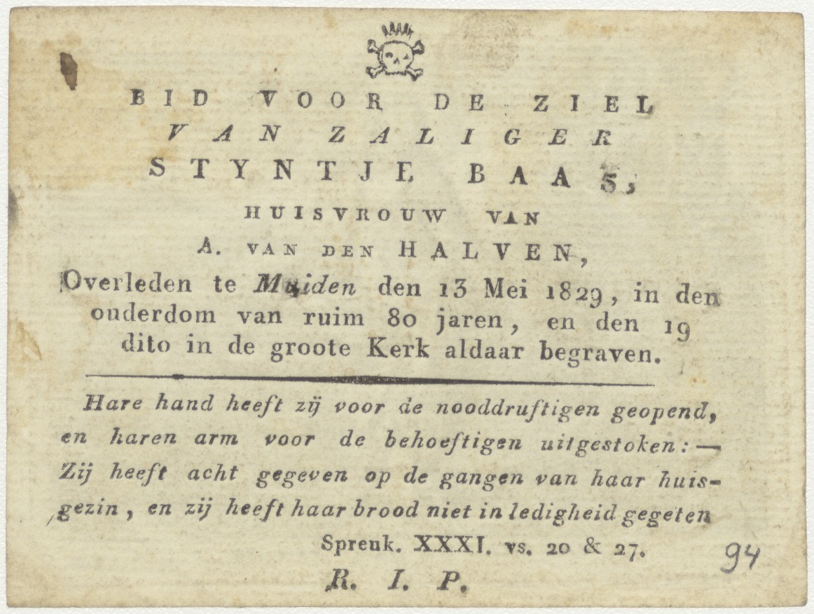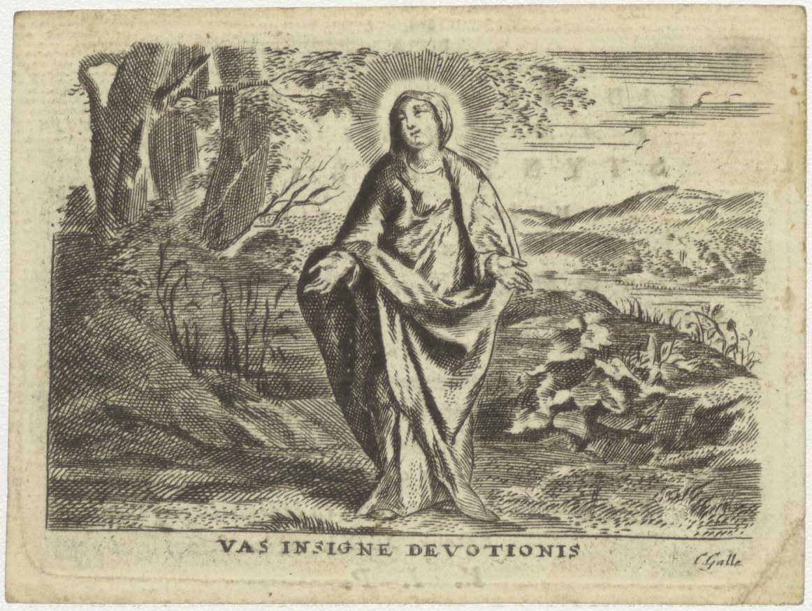 Maria, heerlijk vat van Godsvrucht (Lauretaanse litanie), "Vas insigne devotionis", kz. Bid voor ziel Van den Halven-Baas (+1829), Muiden