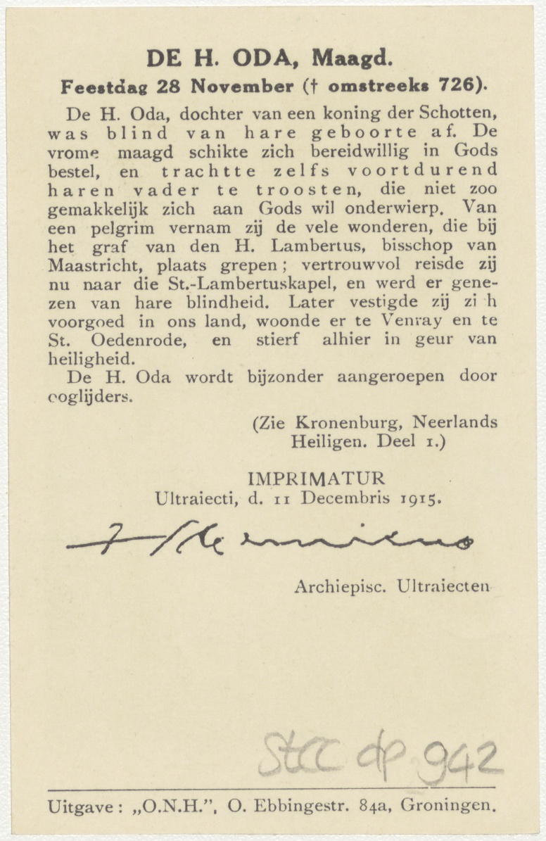 2e Serie Onze Vaderlandsche Heiligen No. 6: H. Oda