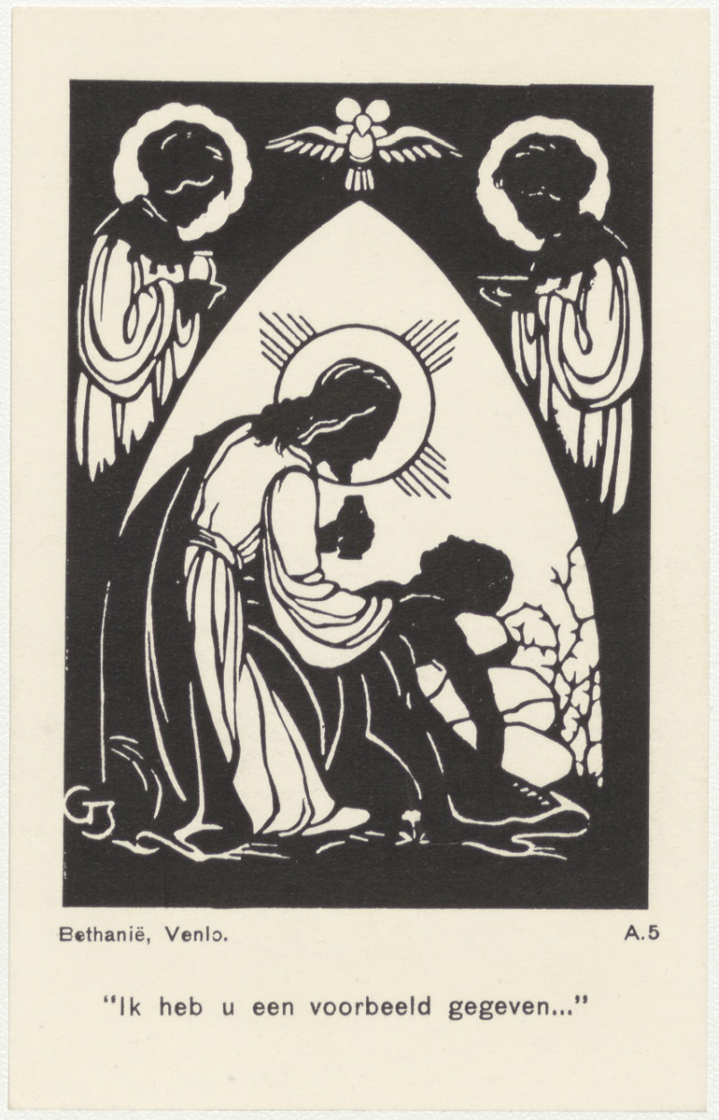 Devotieprent, Jezus die zich over een zieke buigt, met "Ik heb U een voorbeeld gegeven ...", A 5