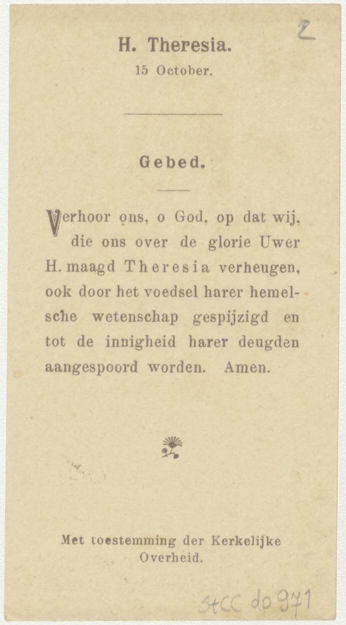 H. Theresia van het Kindje Jezus, kz. Gebed "Verhoor ons, o God, ..."