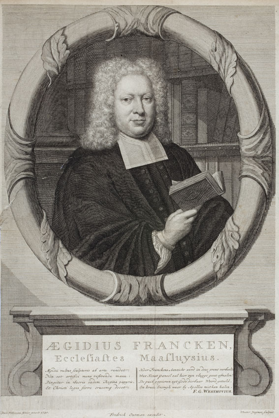 Portret van Aegidius Francken (1676-1743), predikant te Maassluis