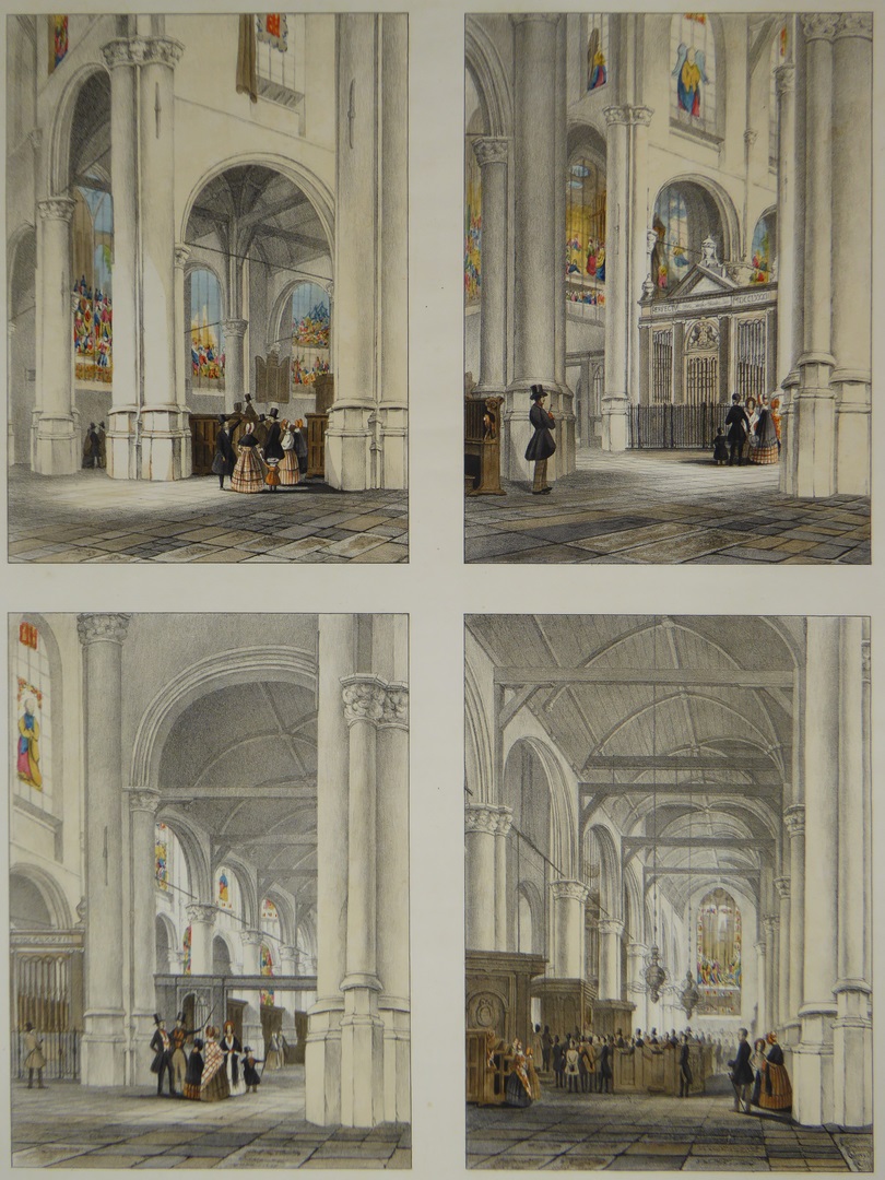 Gouda, het interieur van de Grote St. Janskerk, vier afbeeldingen