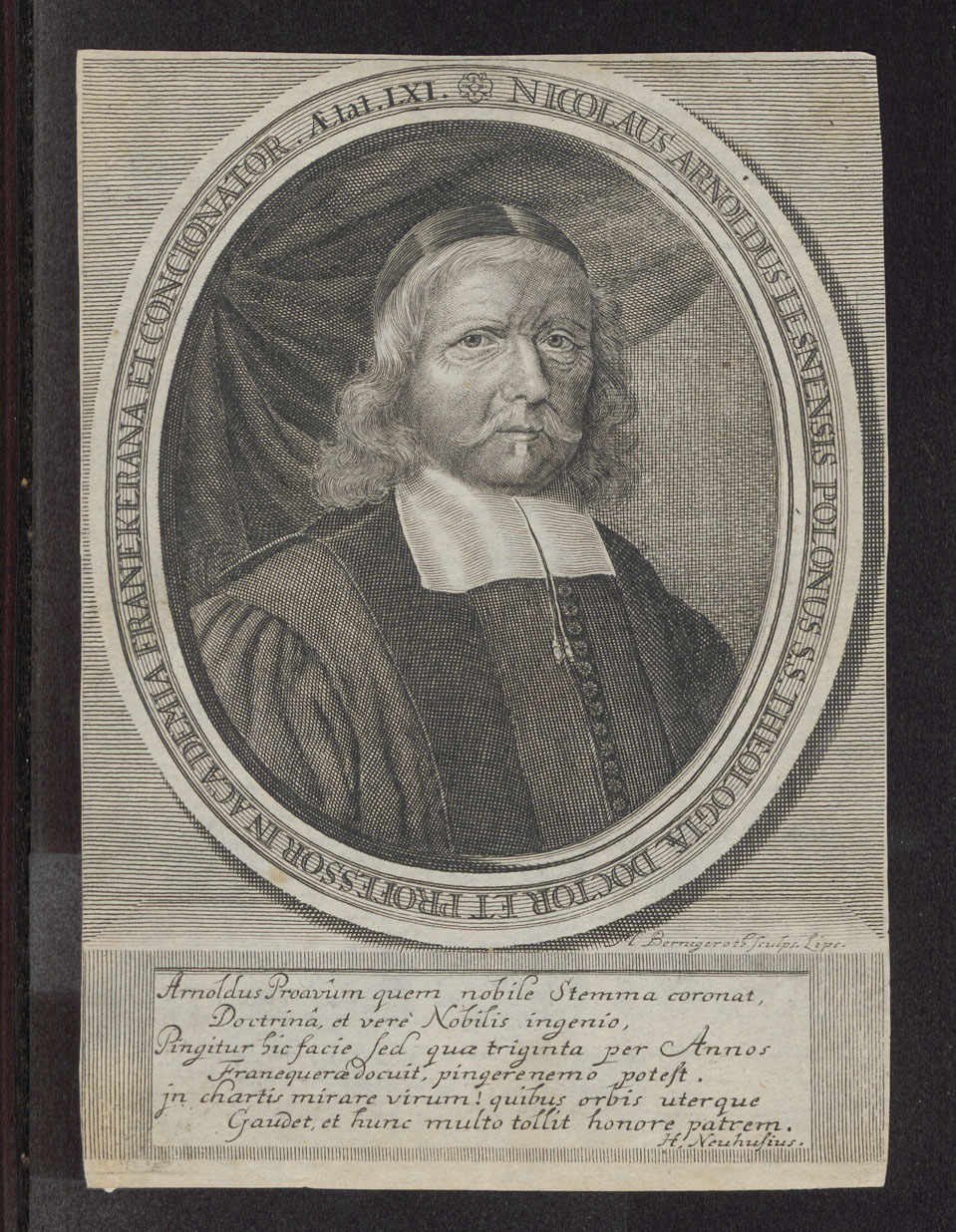Portret van Nicolaus Arnoldus Lesnensis Polonus (1618-1680), predikant en hoogleraar te Franeker