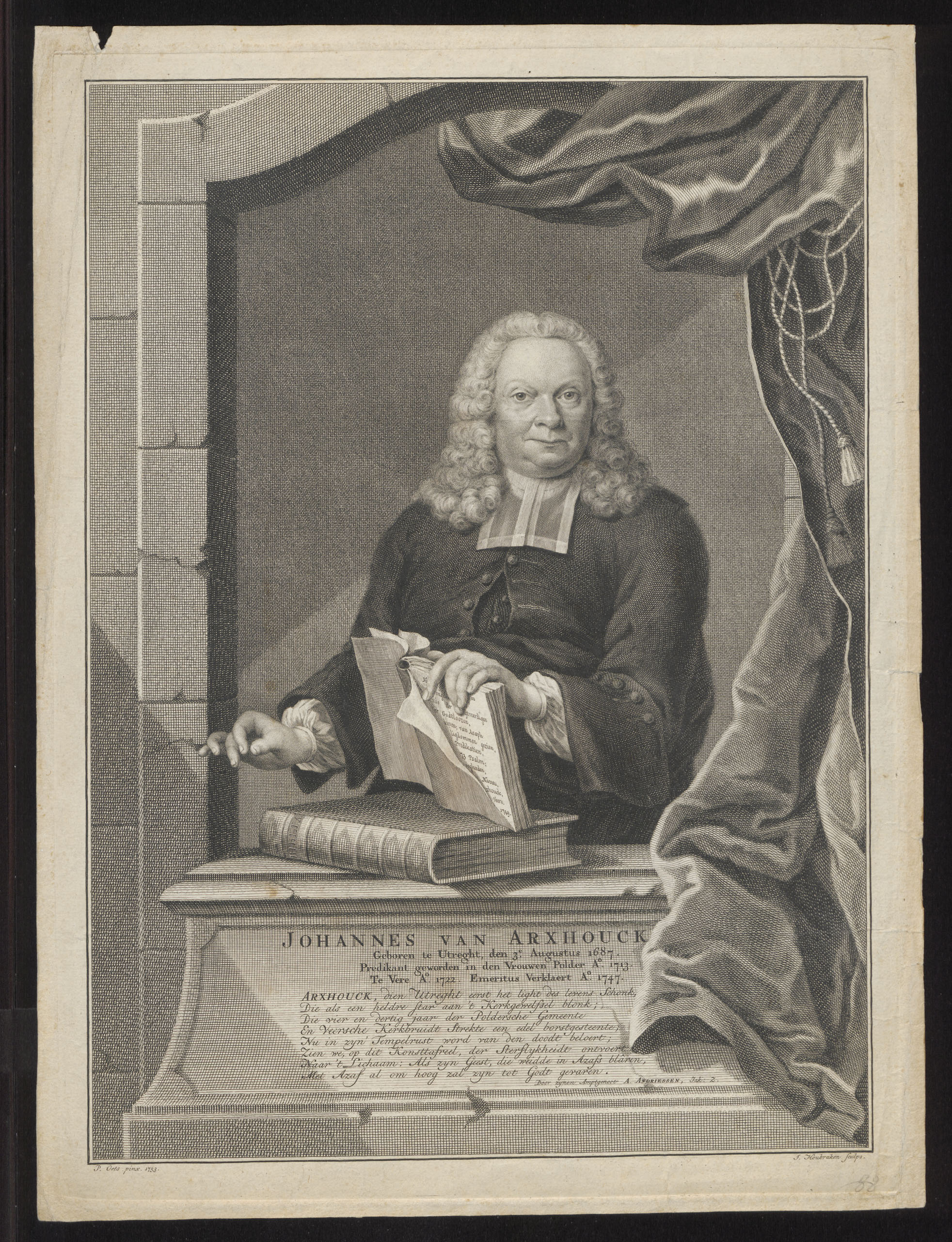 Portret van Johannes van Arxhouck (1687-1762), predikant te Veere