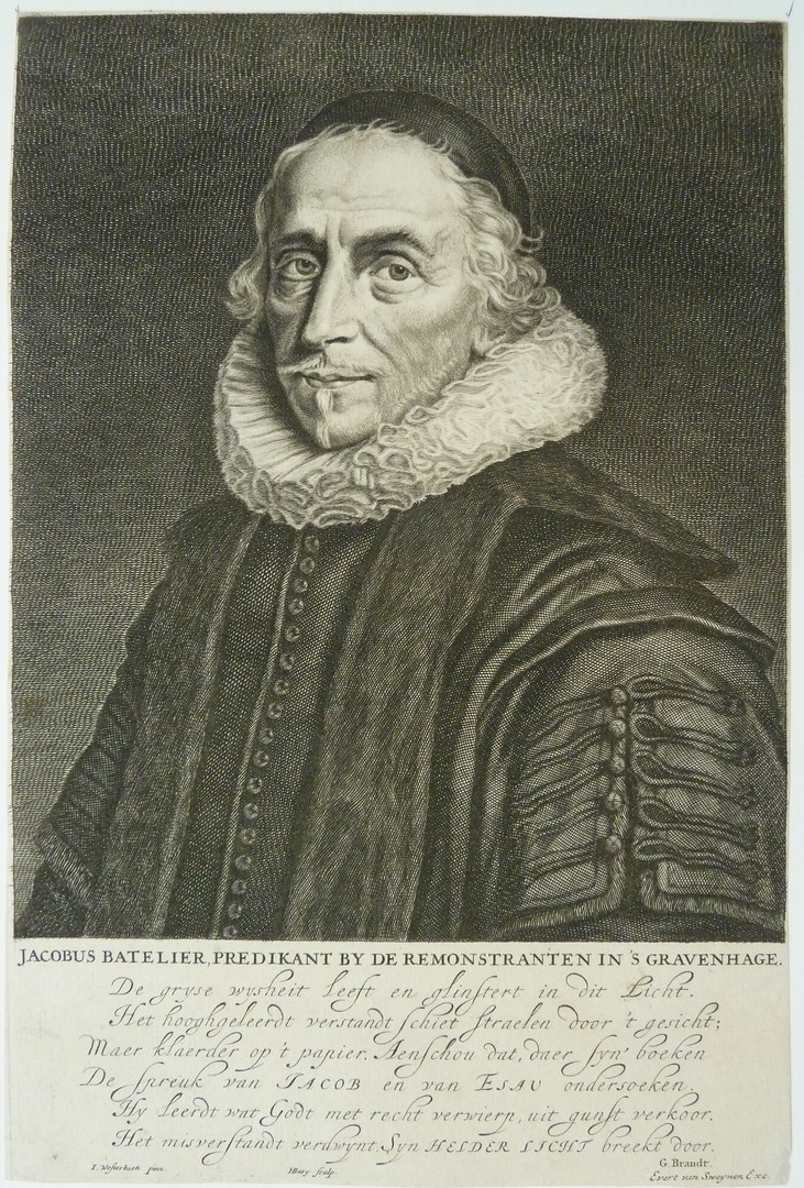 Portret van Jacobus Johannes Batelier (1593-1672), predikant bij de remonstranten te Den Haag