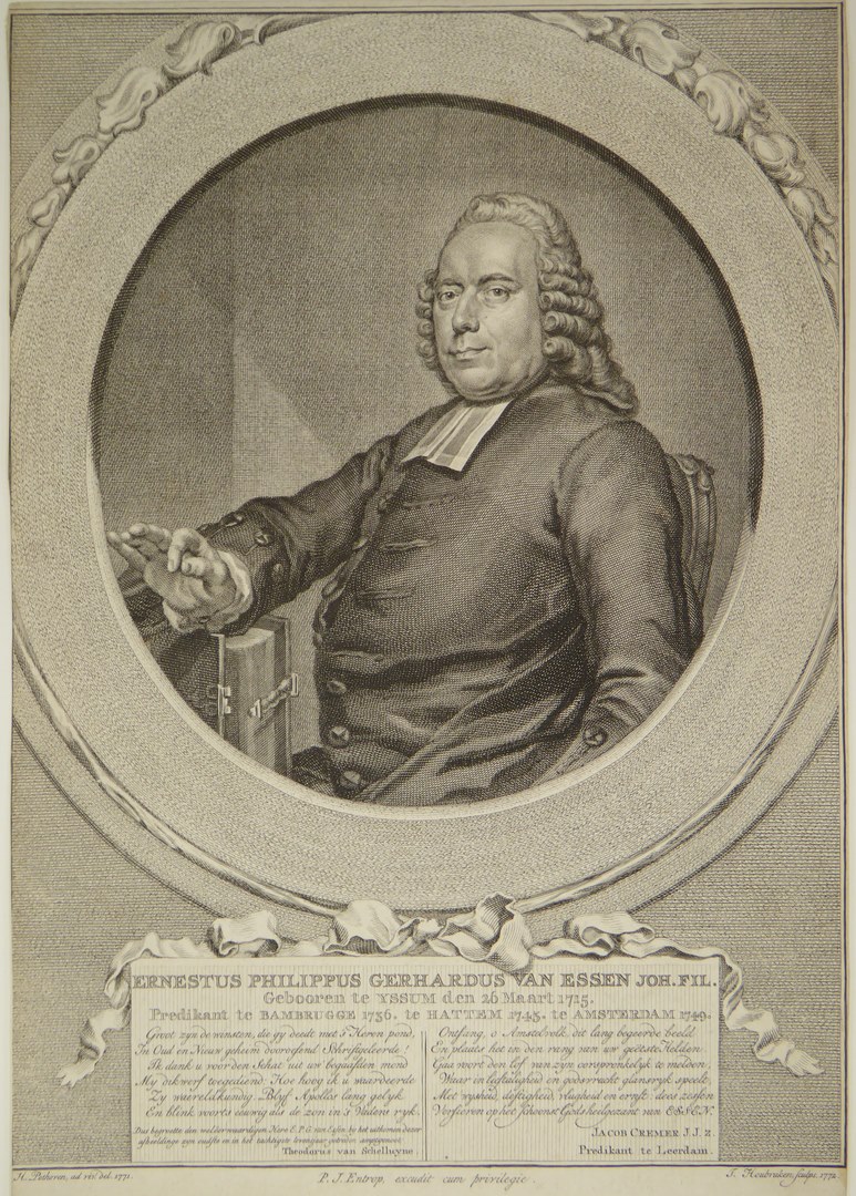 Portret van Ernestus Philippus Gerhardus van Essen (1715-1801), predikant te Bambrugge, Hattem, Amsterdam