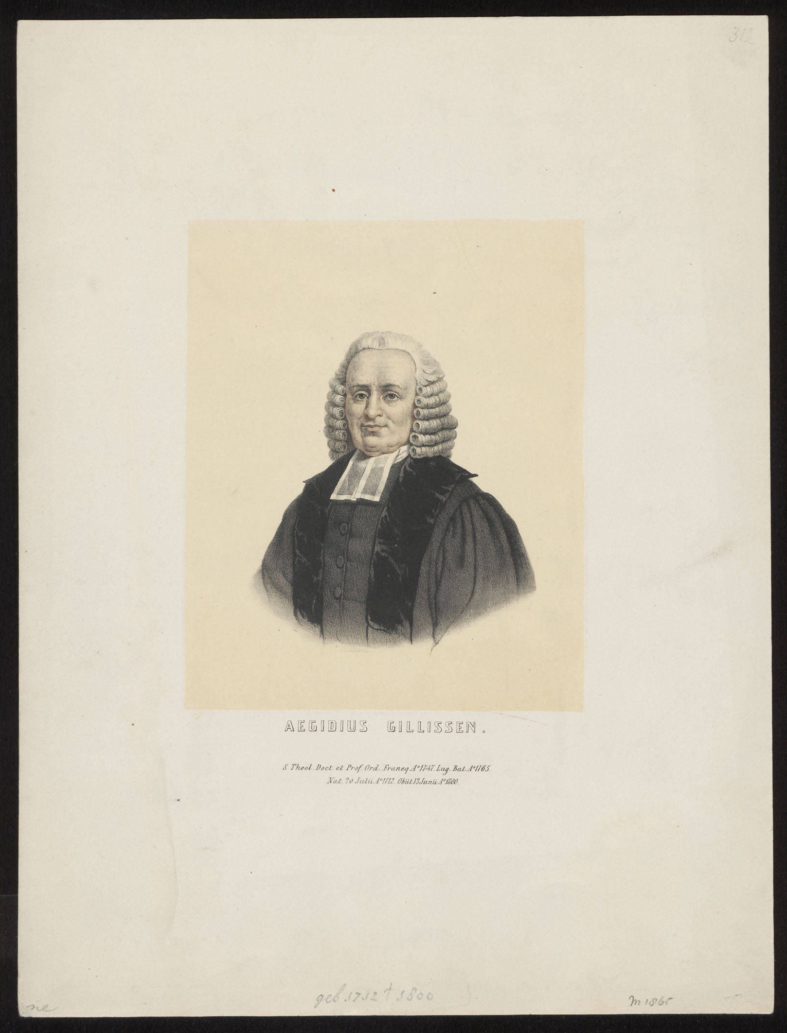 Portret van Aegidius Gillissen (1712-1800), hoogleraar te Franeker, Leiden